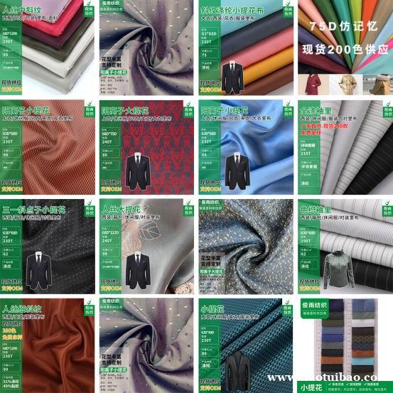 产品介绍:苏州俊雨纺织科技有限公司 供应全涤大小提花、人丝大小提花、涤塔夫、黏胶提花里料、加捻提花里料、袖子里布、全涤小提花里料、舒美绸斜纹布、人丝提花里料、条纹袖里布、羊绒大衣里布、TR大提花里料、人丝斜纹布、提花里布、西服提花里布、涤纶提花里料、logo提花订制、箱包提花里料面料、服装提花里子布、春亚纺、色丁