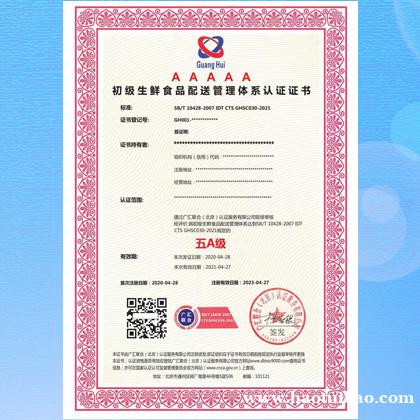 广汇联合认证介绍,初级生鲜食品配送管理体系认证的适用范围